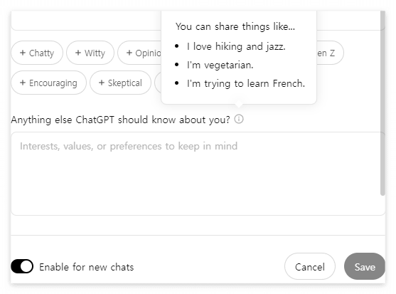 - What ChatGPT Should Know About You: