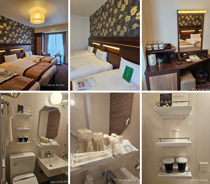 ✅ 객실 크기: 일본 호텔치고 넉넉한 편, 욕조 있음