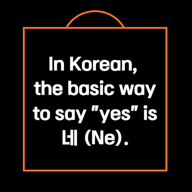In Korean, the basic way to say "yes" is 네 (Ne).